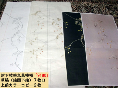 附下着尺用・枝垂れ蔦「9180」 下絵(線画草稿)7枚と上前カラーコピー2枚 販売価格15000円(税・送料込み) |