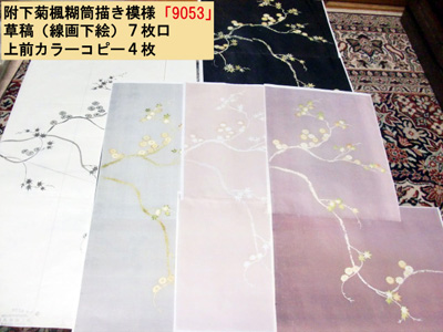 附下着尺用・菊楓糊筒描き「9053」 下絵(線画草稿)7枚と上前カラーコピー4枚 販売価格15000円(税・送料込み) |