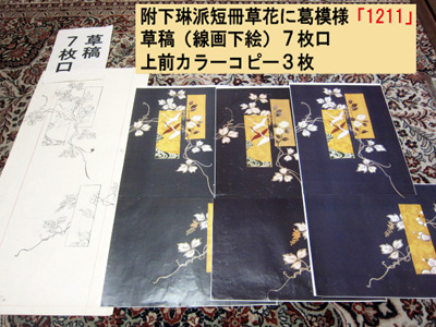 附下着尺用・琳派短冊草花に葛「1211」 下絵(線画草稿)7枚と上前カラーコピー3枚 販売価格15000円(税・送料込み) |