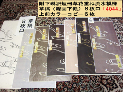 附下着尺用・琳派短冊草花重ね流水「4044」 下絵(線画草稿)8枚と上前カラーコピー6枚 販売価格15000円(税・送料込み) |
