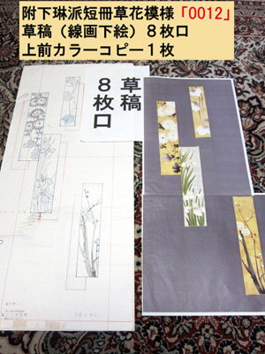 附下着尺用・琳派短冊草花「0012」 下絵(線画草稿)7枚と上前カラーコピー1枚 販売価格15000円(税・送料込み) |