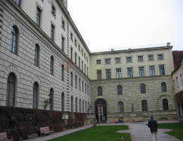 | レジデンツ中庭。歴代国王の居城といっても、外から見るとベルサイユ宮殿のようなきらびやかさは感じない。しかし、中に入ると、数百年間の歴史と、権力を肌で感じることができる。 |