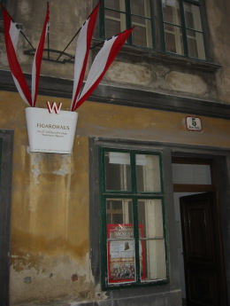 | 『フィガロハウス』。モーツァルトが1784年から87年までを過ごした家で、生涯で最も幸福な期間を過ごした家といわれている。 ここで、オペラ『フィガロの結婚』が作曲された。 中は記念館のようになっていて、多くの直筆の楽譜が展示されている。 クラシック好きの方は、ぜひ行く価値のあるところだ。 |