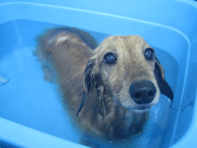 ☆ココくん(M・ダックス)の炭酸スパ入浴の様子です