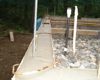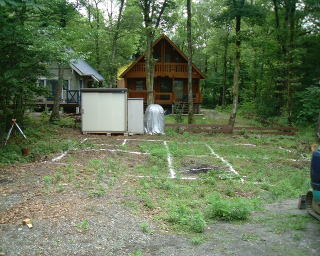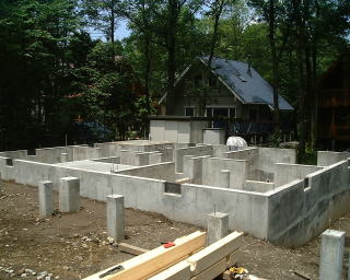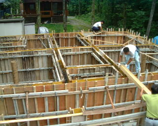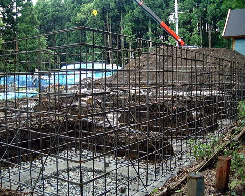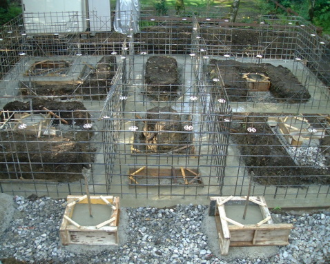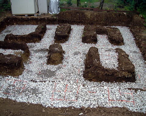 基礎工事は、業者にお願いしました(でも、出来る事は手伝っていましたが・・・)。台風の関係で予定通りには行きませんでした。でも、無事完成です。出来上がってみて、「思っていたより大きく感じる」「いよいよだ!!」と言うところです。