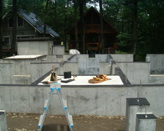 基礎の上に土台の墨だしをします。