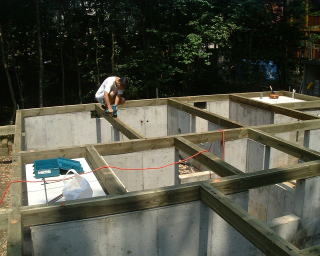 基礎のボルトに合わせて穴を開けています。座堀りもいっぺんにしました。