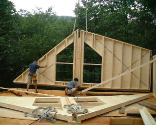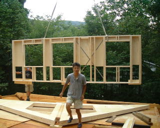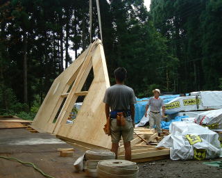 今日は、私と妻と、ひらちゃんと父と、レッカー屋さんの5人でした。午前中にゲーブルはほぼセット出来ました。6枚目のゲーブルは半分です。6枚目のゲーブルをのせている写真がなくてすいません。近所の友人が昼食を作って下さり、妻(写真担当)が取りに行ってました。他にも、お菓子やコーヒーの差し入れをして下さったり、レッカー屋さんの奥様も来て下さいました。本当に皆さんありがとうございました。