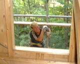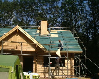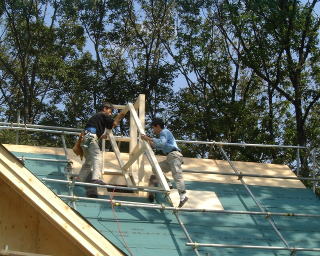 14日(月)は、屋根屋さんが防水シートを貼って下さる中、天窓の開口、野地板のはしを揃える、煙突を付ける、防風シートを貼ると言う作業をしました。昨日に続き、ちょっと空いた時間に駆けつけてくれたひらちゃんが、雪割りを作ってくれました。屋根屋さん3人と、父とその友人2人、私達に妹夫婦に盤ちゃん、とっちゃん、ひらちゃんと賑やかな週末でした。おかげさまで、無事終了です。(屋根屋さんは本当は午前中で終わる作業だったと思いますが、煙突が出来るのを昼食を取りつつ待ってくてました。その間に総出で昼食も取らず頑張りました。)すばらしい仲間達に心から感謝です。