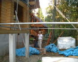 13日(日)は、父をその友人と、とっちゃんで屋根足場を。盤ちゃんが子屋根の野地板を。そして、彦根で私用がある忙しい合間を縫ってひらちゃんが煙突を作りに寄ってくれました。夜、妹夫婦がこれまた仕事を終えて食事もせずに駆けつけてくれました。