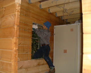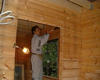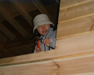 写真上のご主人様は自分でログを建てるのが夢だったそうです。今日の手伝いが終わるまでは。
