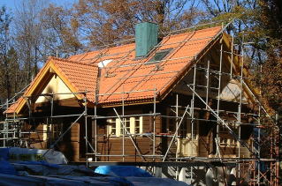 ログサンダーがけ&塗装。ログの外側のサンダーがけと塗装1回目終了(サンダーが1つ動かなくなりました)。
