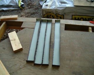 煙突の仮屋根と水切りを水切り板で作りました。