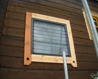 右:1階のキッチンの窓。綿を入れました。1階の窓の綿入れ完了。