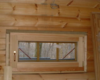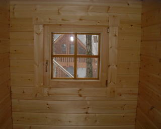 左:2階の階段の窓。ケーシング取付け完了。2階勉強部屋の窓のケーシングも完了です。