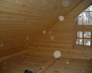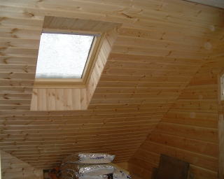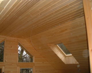 左から、 リビング(吹き抜け)の壁仕上げ・天井と天窓。ロフトの壁仕上げと天井。2階寝室の天井と天窓です。壁仕上げ・天井とも1階の一部(電気工事のため)以外は完成です。次は廻り縁です。