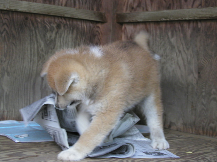 子犬の頃のクウちゃんの2番目に楽しみは 新聞紙と遊ぶことでした。