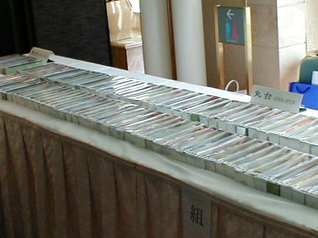 | 作品の採点中の教授 | 作品展の準備に私と一緒に頑張った連さんと藤井さん |