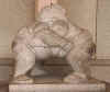 JR両国駅で降りれば、国技館はすぐ目の前です。 改札口を出たところに、「力相撲」と彫り込んだ大理石の像がありました。(写真左上) 見ての通り、おしりの辺りが黒光りしてるから、通りかかった人たちがさわって行くのでしょう。 隣の大江戸博物館へは何回か来たことがあったのに、国技館は初めて。 近くで見ると、凄くでかい建物。 きれいな「のぼり」の傍を通って、入場口へ向かう頃には、もう気分満点です。