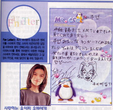 雑誌社に送られてきたファンレターの中からいくつかを選んでスターから返事をもらって雑誌に掲載します。と言うことでこの手紙は雄一本人が書いたものに間違いないようです。字が下手でも美形に生まれた方が得ですよね。では金城 武の字と比較してみましょう。