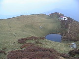 | 三嶺の池と山頂ヒュッテ |