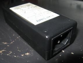 - 電源はスイッチング方式のACアダプターです。リサイクル店で¥300で手に入れました。CD_ROMドライブに必要な容量は、12v 0.9A と 5v1.5A と記載されていましたが、実際に稼動させて計ると、通常はその1/3~1/2程度でイジェクト等のときだけ表示されている量が流れます。 ACアダプターの容量は12v,5vとも2Aなのでokですし、12vからレギュレータを経てコントローラー用の5vを取っても余裕は有りそうです。