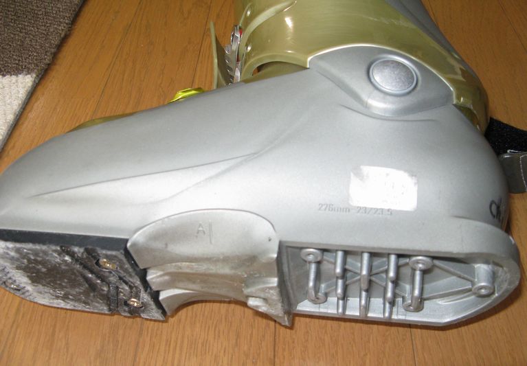 - 家内のスキーブーツが破損しました。かかと部分の硬質ゴムが割れています。(両足とも)