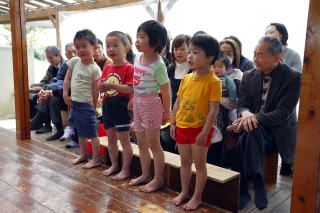 | リズムの後みんなで昼食 | 「三年寝太郎」を読んでもらいました | |