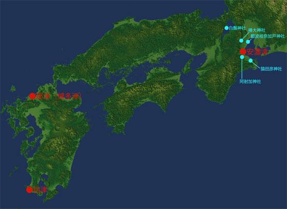 中国の歴史書にある日本三津(安濃津・那津・坊津)とサルタヒコを祀る神社の位置
