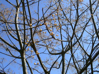 枝先が扇状に広がる独特の樹形は、冬の落葉期にもよく目立つ。