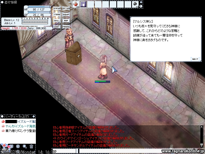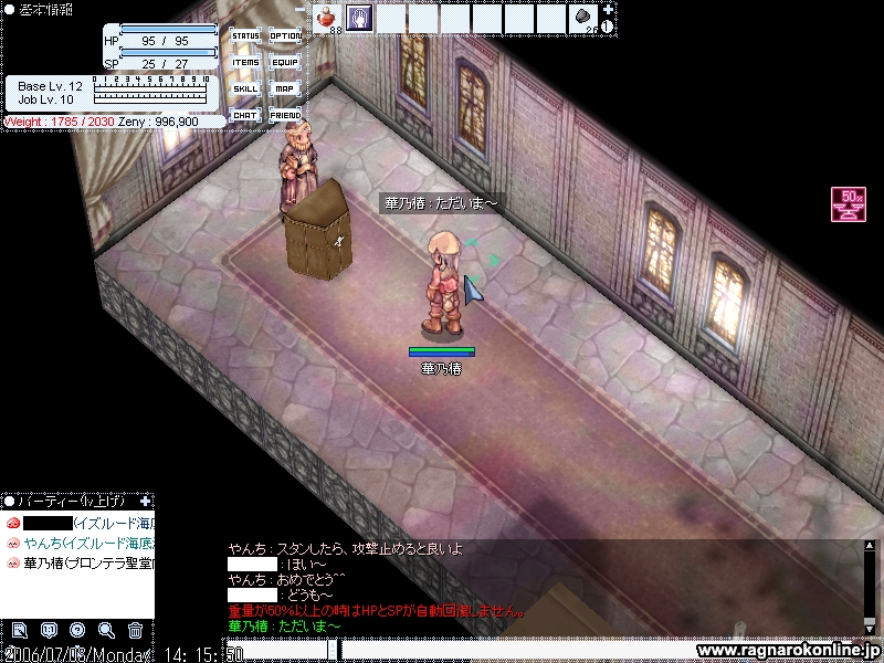 しかし,「lv上げ手伝ってください」とチャット出しているシーフさんを発見する事が出来ました.