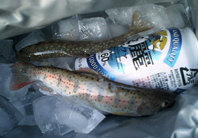 ここんところ、愛知川三昧…。やはり入食いポイントで今期初アマゴをゲット。上はイワナ君。