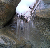 昨日の雪が残っていて、道はガリガリ、ツララはご覧の通り、さぶぅ