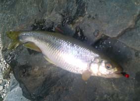よっしゃ!やっと1匹ゲットと思ったらなんと巨大なカワムツ君…
