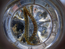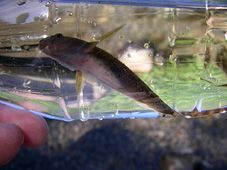 捕まえてペットボトルに入れたハゼの仲間