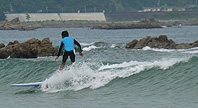 かなり小さなうねりでしたが、市後の波では何とか遊べました。 |
