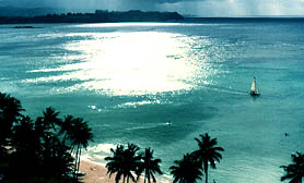 グアム。もう少しで日没を迎える。 海面で強いひざしが、四方八方に飛び散る…