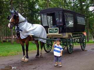 最終日はお昼から私も学生時代の友達と会って、ノーザンホースパークに行きました。馬車が走っていたり、乗馬の馬がそのへんを歩いていたりで、動物大好きな俊介はとても楽しかったみたいです。お馬♪お馬♪って言ってあちこち見回しておりました。