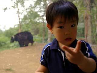 全てヒグマで近くに来るとかなり迫力がありました。俊介は近くで熊が見れてとても喜んでおりました。「クマさんと写真撮る〜!」って言ってピースサインを決めている俊介です。