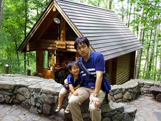 新富良野プリンスホテルのすぐ横にあるニングルテラスです。森の中に小さなログハウスのお店が並び、売っている物も富良野ならでは物ばかりです。雑貨などもとてもかわいいのが沢山あり、1日見ていても飽きないでしょうなぁ。時間があまりなかったのと、俊介が一緒でしたのでゆっくりはみれませんでしたが、もう一度必ず来たい場所のひとつです。後ろに写っているお店は「もりのろうそくや」です。本当にかわいいんですよ〜。