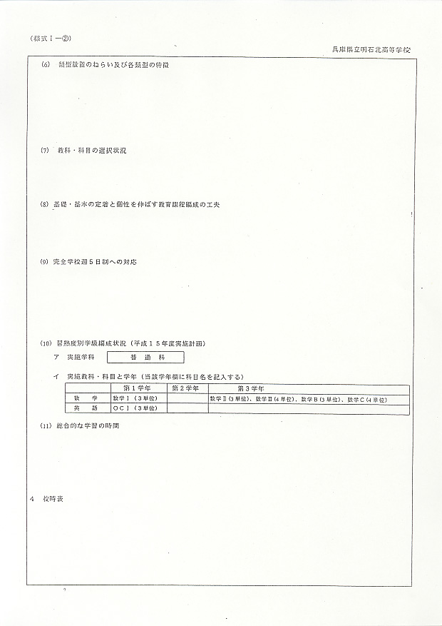 明石北高校の学力別クラス編成の実施要領。他の欄は空白です。