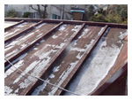 勾配(屋根の角度)も緩いので、雨水がカラーベストの重ねの隙間から戻りやすく、下地のコンパネがいたんでるのが予想されます。 |