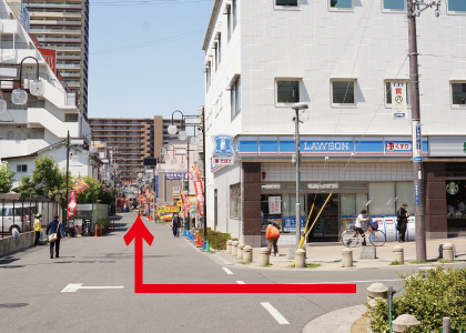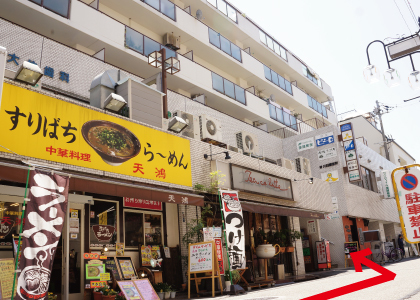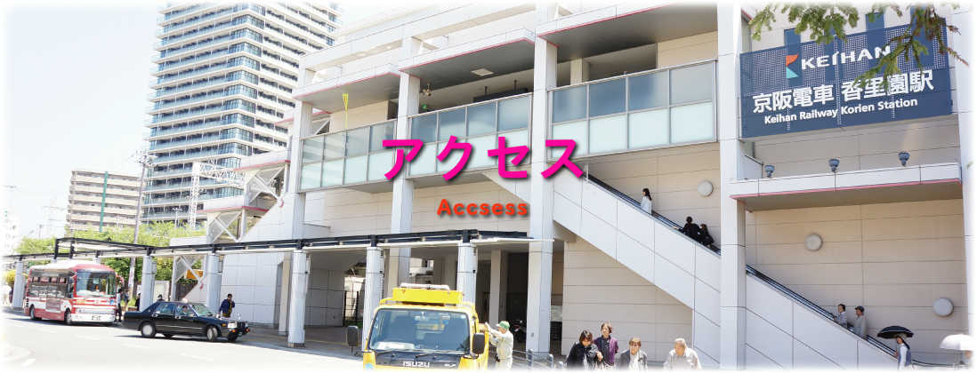香里園駅西口からローソン横の道を直進、すぐに出てくる左手のマンション2Fになります。