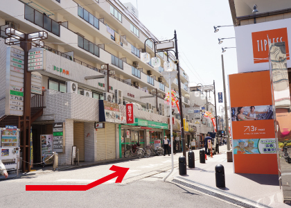 オレンジの『ティップネス』の看板を目印に、左手に進んで頂きます。