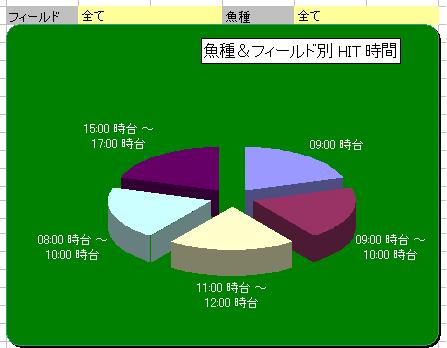 釣れた時間のデータがあれば当然グラフが出せるわけで、これもボタンひとつで抽出してくれる用にしました。なので、何時ごろ出かければばいいかわかりますなっはっは。