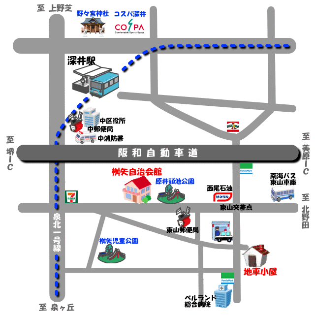 自治会館・地車小屋・公園の位置関係などは下記の地図を
