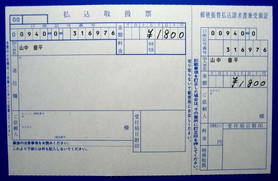 口座記号番号 00940−0−316976 加入者名 山中修平
