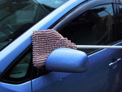 ■バイザーの内側やドアミラーと窓の隙間も楽に洗えます。