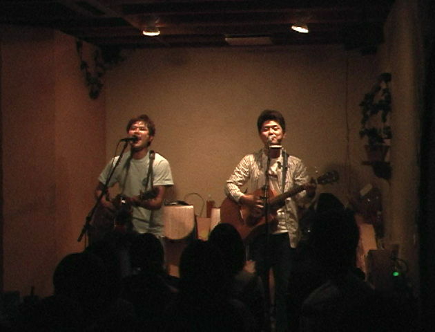 | いよいよこの瞬間がやってきました。 待ちに待ったヨシケンファーストCD発売記念ワンマンライブ。 ストリートで歌い始めたヨシケンが、ついにここまで来ました! 17:00頃からリハーサルをしていると、なんと花束がいくつか送られてきました。 ヨシケンのCDデビューを素敵な花束でお祝いしたいただきました。 本当にありがとうございます! 今回はワンマンライブと言うことで、ヨシケンだけを見にきてくれるお客さんばかりです。 このステージだけは必ず成功させたい! そんな気持ちを抱いて、19:40 ステージに上がりました。。 1曲目:SAKURA オープニングは暗闇の中、ギターとハープでのスローなインストから入りました。 そして歌い出しと同時にライトに照らされた二人。。 緊張なのか意気込みすぎなのか、はたまた冷静だったのか・・・自分でもよくわかりませんでした。 そんななか、CD2曲目に入っているこの歌を歌いました。。 2曲目:世間話/フィードバック 世間話はCDにも収録。フィードバックは第2弾に入れたいと考えている曲です。 マイナー系の曲を2曲続けて歌いました。 3曲目:すろう 今回はワンマンライブ。いったんここで座り演奏にしました。 トークの話題も、まずはやはりCD発売について。 夏頃を予定していた発売も、色々とあってこの日ま延びました。 夏の歌がCDに数曲入ってるのもそんな理由です(; ̄◇ ̄)ノ゙ そしてCDの5曲目に収録している『すろう』を演奏しました。 4曲目:幸せの訳 『秋』と言えば・・・そんな話題から『食欲の秋』『芸術の秋』・・・ そして秋は物思いに色々と考える季節でもあります。 『幸せの訳』は、そんな秋の季節にぴったりな歌です。 5曲目:ずっと 誰もが持つ恋愛感。しかしそれは人それぞれ違いますよね。 この歌は10年後でも手をつないで歩いていけるような素敵なカップルをイメージした曲です CDでは7曲目に、ピアノ演奏メインで収録されています。 さて、ここでまたお手紙をいただきましたので紹介しました。 ペンネーム『長浜のサルティンバンコとは私のこと』さんから。 ≪ヨシケンさんはどのような運びで結成されるに至ったのですか?≫と言う質問。 ヨシケンは言わずと知れた(?)同級生コンビです。 3年前に友人の結婚式で、ゆずの『いつか』を歌ったのがひとつのきっかけでした。 2年半ほど前からYOSHIが一人で長浜駅前で路上を始めました。 そしてしばらくしてKENを誘ったのです。 最初はあくまでも『ピン』にこだわっていました。 なんせ路上でも二人横に並んでるのに、一緒にはほとんど歌いませんでしたからね。 そのときの二人の名前が『竹善&KUNIKEN』というモッサイ名前でした・・・。 YOSHI+KENとして本格的に活動し始めたのは去年の春くらいです。 そして現在に至ります。って感じですね。。。 6曲目:この道 『どこまでも続く道を どこにゴールを決めて 何に向かうのか 答えもこの道にある』 CDには入っていませんがすごくいい曲です。 7曲目:DREAM21 CD作成はヨシケンの一つの夢でした。 その夢が今回実現できたのもたくさんの方々に応援していただいたおかげです。 そしてもう一つ、自分達が夢をあきらめずにここまで頑張ってきたからだと思います。 CD発売にあたって、最も自分達の心境に近い歌を歌わせていただきました。 ヨシケンの持ち歌ではないんですが本当に良く歌わせていただいているこの歌で 会場も盛り上がりました! 『今も夢を見てるよ 世間じゃそろそろ落ち着く年頃 色々人には言われるけれども 胸を張って歩いてるよ 今も恋をしてるよ いろんな仲間に支えられながら いろんな事にも挑戦してくよ まだまだ前を向いていくよ 笑顔で』 8曲目:この声 アルバムのタイトルを決めるときに色々な案が出て、かなりもめたんですが やはりヨシケンと言えば!っていうことでKENがむりやり『この声』を採用に持っていきました。 一度聞けば耳に残るフレーズ。 これからも歌っていくので、ライブでは皆さんも一緒に歌ってくださいね! 9曲目:So I Love You さらに会場の皆さんと一体になるべくこの歌を大合唱しました。 この歌がCD化されるときはライブ会場のお客さんの声も録音させていただきかもしれません! そのときはよろしくお願いします! 10曲目:青色の心 そして最後の曲。CDの3曲目に収録されています。 今回の10曲の収録作の中でも自信作です。 大きな声援・手拍子の中熱唱させていただきました! アンコール 1曲目:この声 長い時間聞いていただいたにもかかわらず、アンコールをいただきました! ありがとう! 1曲目は再度アルバムタイトル曲のこの歌を歌いました。 ノリノリで歌い出したは良かったんですが、途中二人同時にコードがわからなくなる事件勃発 口は動けども手が動かず・・・みたいな。 ヨシくんケンちゃんコールも先程より大きなこえでいただきました!サンキュー! アンコール 2曲目:空を眺めて アンコール 3曲目:応援歌 最後2曲は来てくれたお客さんの為に、 そしてヨシケンが今後も大事にしていきたい曲を歌