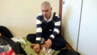 移動のバスの中「寝るポーズ」と言われて